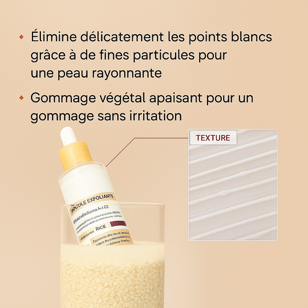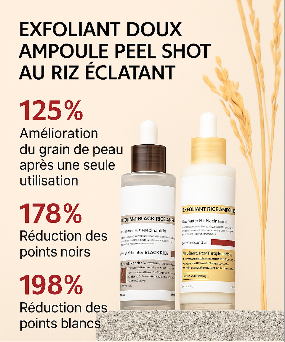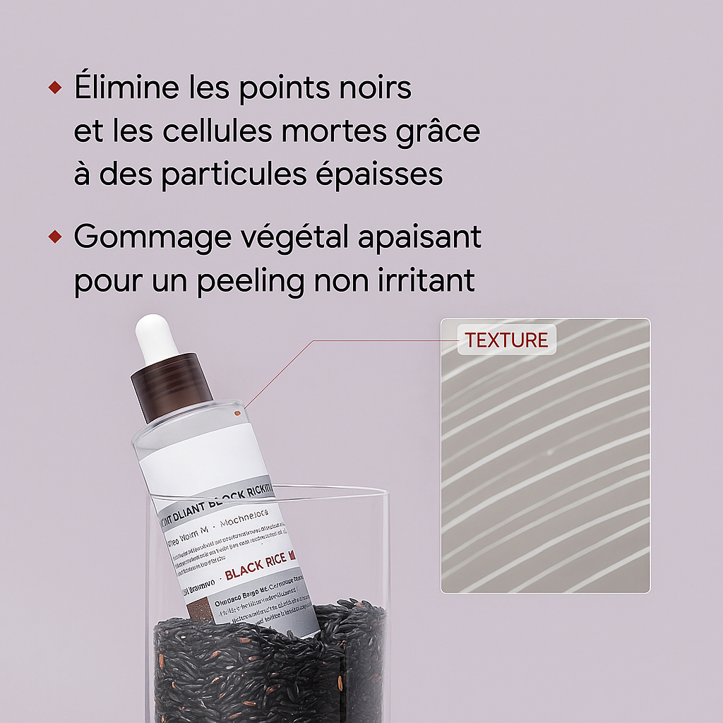 Glowing Rice réunit des exfoliants doux (AHA, BHA, PHA) et l’hydratation intense de l’eau de son de riz, enrichis d’un complexe illuminateur à base de niacinamide et d’extraits de riz fermentés. En 1 à 2 minutes seulement, cette formule double action resserre les pores, diminue points noirs et blancs, régule le sébum et révèle un éclat incomparable. ✨