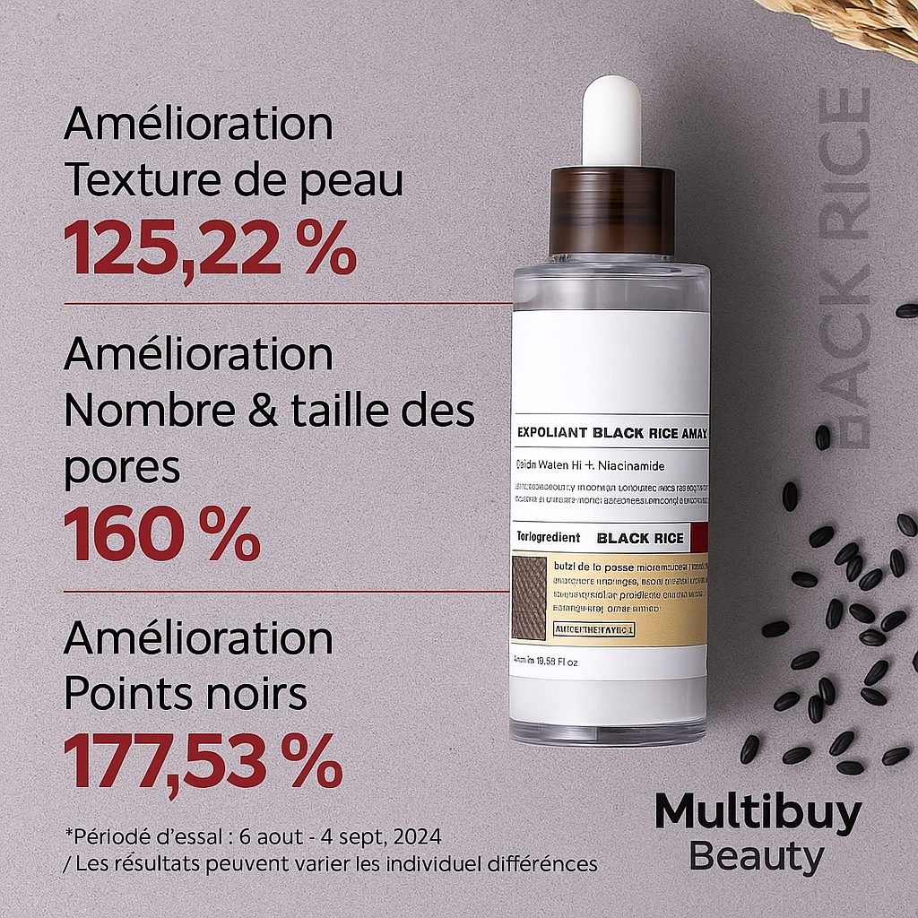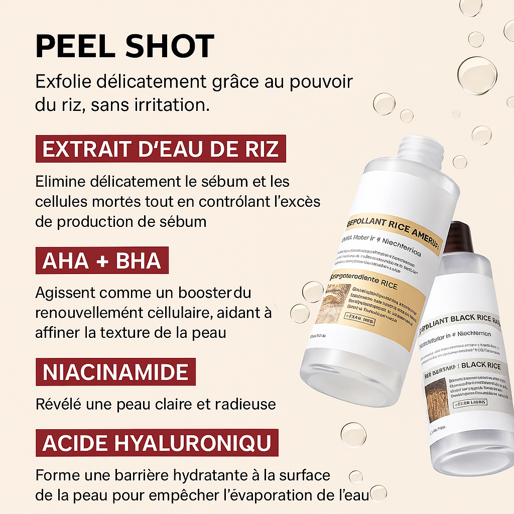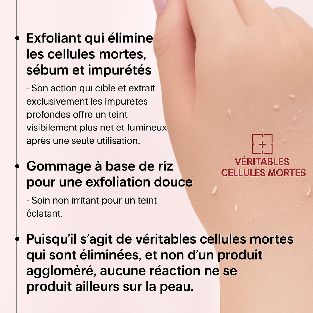Glowing Rice réunit des exfoliants doux (AHA, BHA, PHA) et l’hydratation intense de l’eau de son de riz, enrichis d’un complexe illuminateur à base de niacinamide et d’extraits de riz fermentés. En 1 à 2 minutes seulement, cette formule double action resserre les pores, diminue points noirs et blancs, régule le sébum et révèle un éclat incomparable. ✨